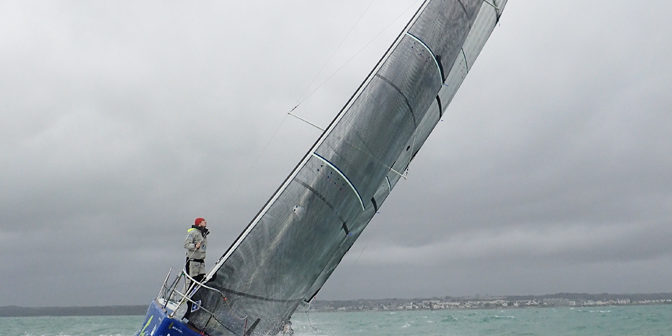 Sous la pluie, par 25 nœuds et dans une mer plutôt formée, les figaristes intéressés se sont relayés à bord du Figaro Bénéteau équipé de ces voiles de démonstration. Les conditions n’étaient pas idéales pour observer des voiles sous toutes leurs coutures, mais cette journée est aussi une belle occasion d’échanger entre voiliers et coureurs.